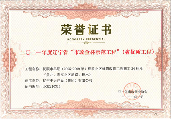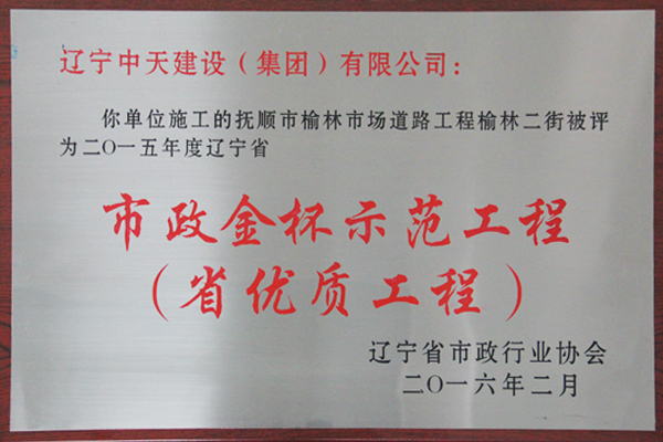 企業(yè)先后榮獲“全國優(yōu)秀施工企業(yè)”、 “中國AAA級(jí)信用企業(yè)”、“全國保障性安居工程建設(shè)勞動(dòng)競賽先進(jìn)單位”、“遼寧省最受尊敬企業(yè)”、“遼寧省優(yōu)秀建筑業(yè)企業(yè)”、“遼寧省工程建設(shè)質(zhì)量管理優(yōu)秀企業(yè)”、 “遼寧省守合同、重信用企業(yè)”、遼寧省“AAA級(jí)信用企業(yè)”、 “撫順市安全生產(chǎn)先進(jìn)單位、紅旗單位”、“撫順市安康杯競賽先進(jìn)集體”等多項(xiàng)殊榮。