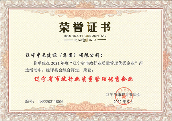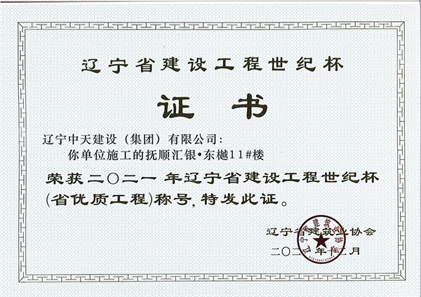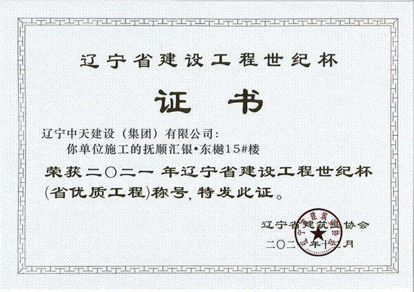 遼寧中天建設(shè)集團(tuán)領(lǐng)導(dǎo)班子認(rèn)真貫徹落實(shí)科學(xué)發(fā)展觀,堅(jiān)持以人為本,積極培育“開拓進(jìn)取,求新向上,求真務(wù)實(shí),團(tuán)結(jié)奉獻(xiàn)”的企業(yè)精神和“干一項(xiàng)工程交一方朋友,占一方市場,樹一座豐碑”的經(jīng)營理念。經(jīng)過遼寧中天建設(shè)者的辛勤耕耘,許多建筑精品工程象一座座豐碑聳立在撫順大地上,令人矚目。撫順市保障性住房建設(shè)工程榮獲全國優(yōu)質(zhì)工程金獎(jiǎng),撫順移動(dòng)通訊綜合樓、撫順市電信綜合樓、撫順市三寶屯污水處理廠擴(kuò)建及中水回用工程等多項(xiàng)工程獲得“遼寧省世紀(jì)杯工程”、“遼寧市政金杯”工程等殊榮。公司還多次榮獲“省建筑業(yè)質(zhì)量管理先進(jìn)施工企業(yè)”稱號(hào)。
